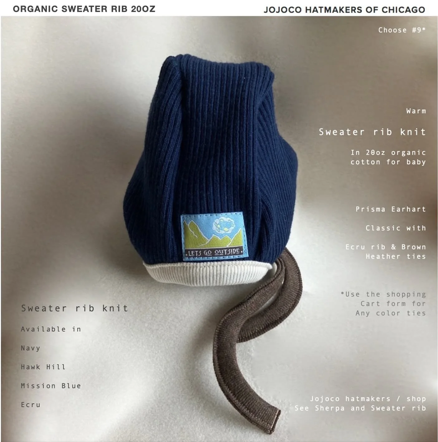 Could it be the largest color collection of pure organic & polartec colors ever? You can have any color for Earhart pilot caps, our original, for your baby, newborn to age 3.